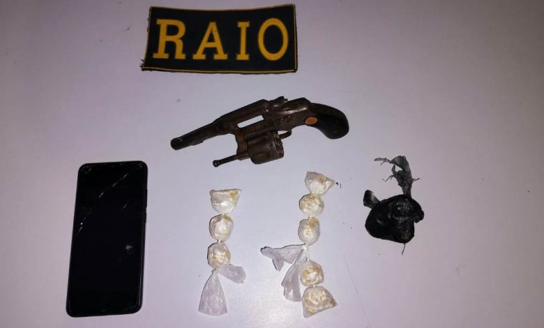 Durante a abordagem, o adolescente indicou o local onde residia. Com a autorização de uma responsável, os policiais realizaram buscas no imóvel, onde foram encontradas porções de drogas, entre elas crack e maconha, além de um revólver calibre 32.