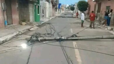 Foto: Redes sociais Uma via residencial de Altaneira amanheceu com a rede elétrica comprometida após a queda de vários postes,…