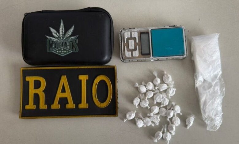 Durante as diligências, um homem apresentou comportamento suspeito ao perceber a presença policial, o que motivou a abordagem. Embora nada de ilícito tenha sido encontrado com ele, os agentes realizaram buscas nas proximidades e encontraram 11 gramas de cocaína, já divididas em 24 pinos, além de uma balança de precisão escondida em um ponto próximo.