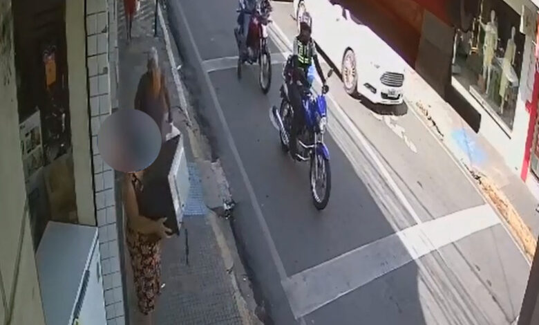 As imagens indicam que o fluxo intenso de pessoas na calçada contribuiu para que a saída ocorresse sem intervenção imediata. Um motociclista que passava pelo ponto comercial chegou a sinalizar para um funcionário logo após a retirada do item. Quando a equipe percebeu a situação, a mulher já havia se afastado.