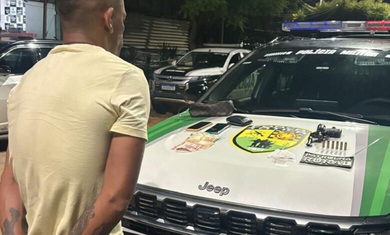 No decorrer das buscas, o suspeito foi localizado em um espaço interno do imóvel. Com ele, os agentes encontraram um revólver calibre .38 municiado, além de porções de substância semelhante à cocaína, celulares e dinheiro em espécie.
