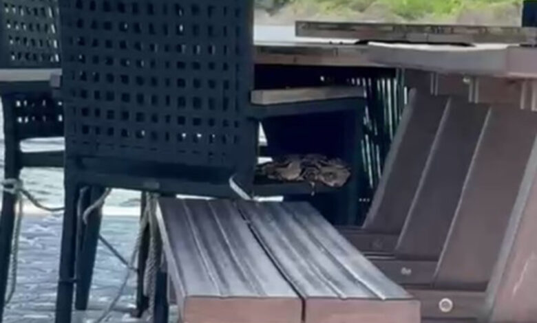 O chamado ocorreu após a presença do animal ser percebida em uma estrutura próxima à água. No local, a equipe confirmou tratar-se de uma jiboia (Boa constrictor).