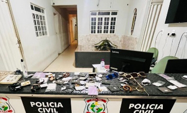 Na revista, os policiais encontraram diversos produtos provenientes do furto, entre eles relógios, perfumes, óculos e acessórios como alianças, correntes e pulseiras.