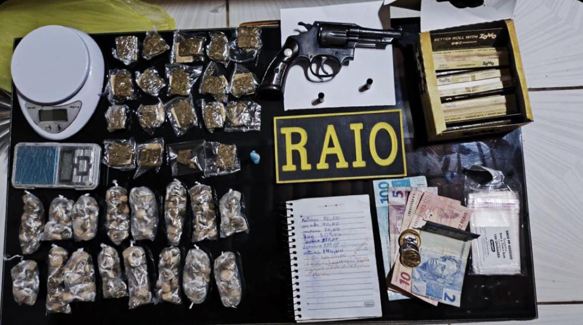 (CPRAIO) da Polícia Militar apreendeu drogas, arma de fogo e munições durante