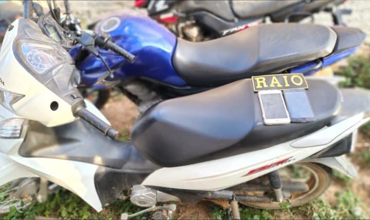 A equipe se deslocou até o local indicado, onde encontrou a motocicleta HONDA BIZ, de cor branca e placa SBQ6147, além de uma HONDA CG 160, de cor azul e placa SBJ2D15.
