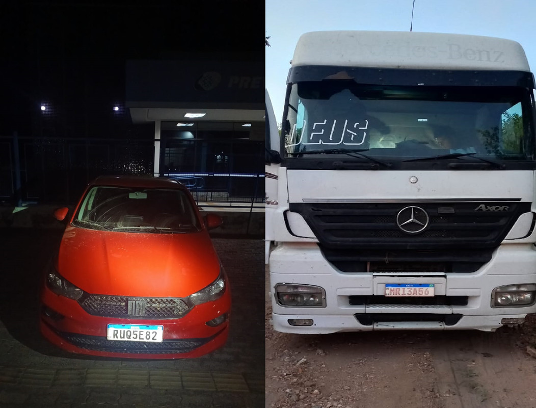 equipe se deslocou até o local e localizou um caminhão Mercedes-Benz
